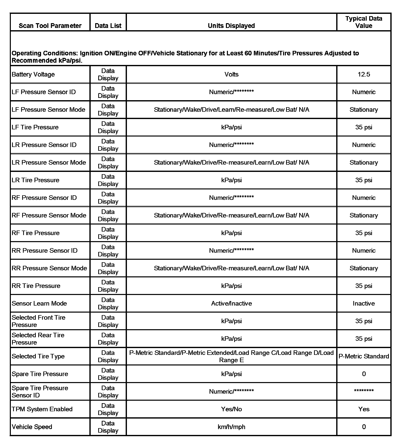 Scan Tool Data List: