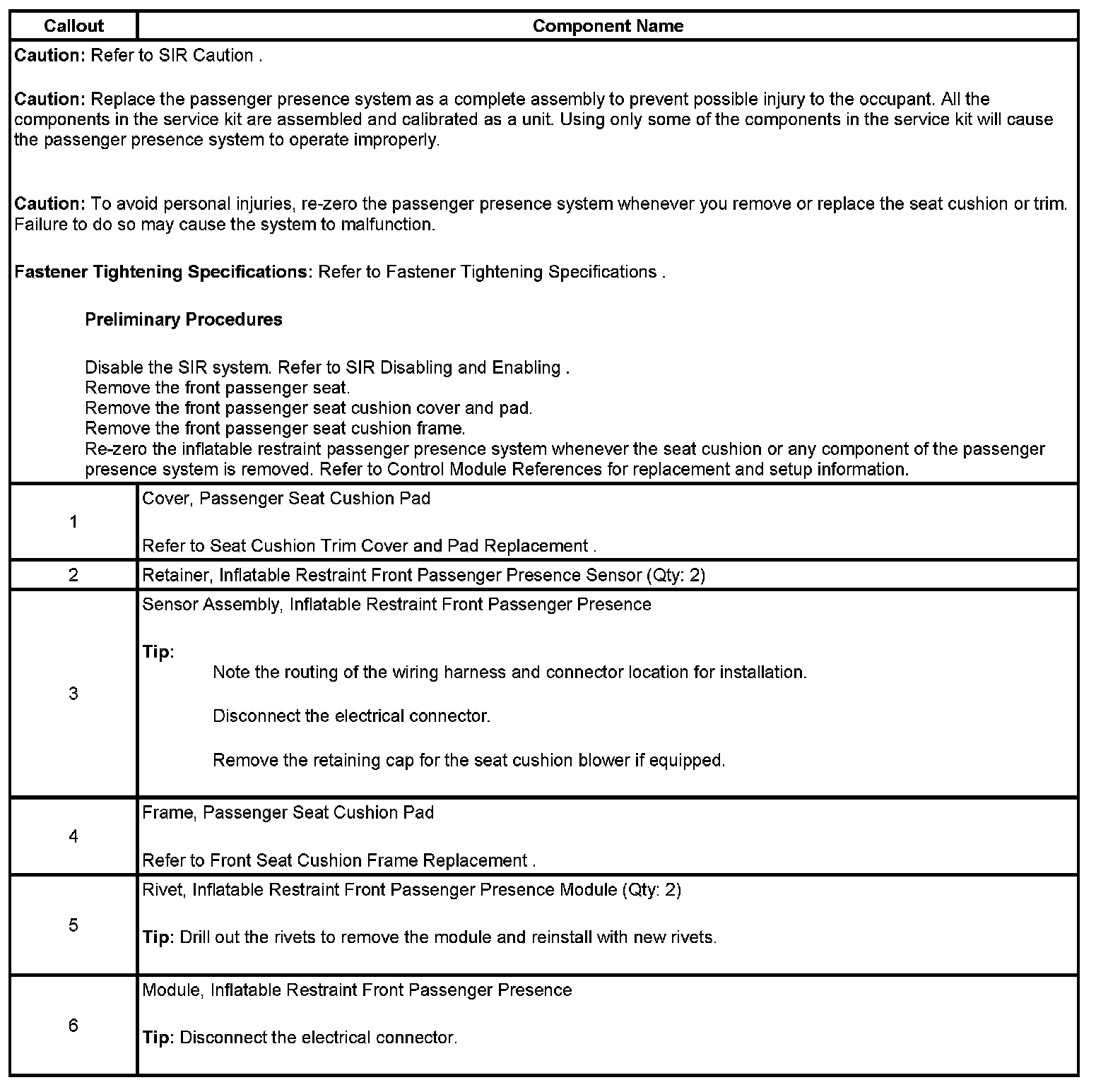Inflatable Restraint Passenger Presence System Replacement - Front