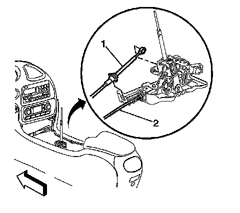 2. Slide the transaxle range selector cable (1) fully into the console until it snaps into place.