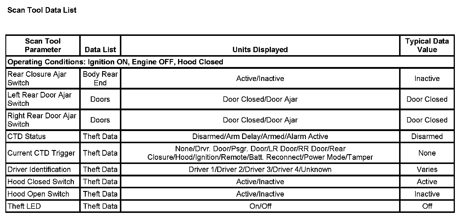 Scan Tool Data List: