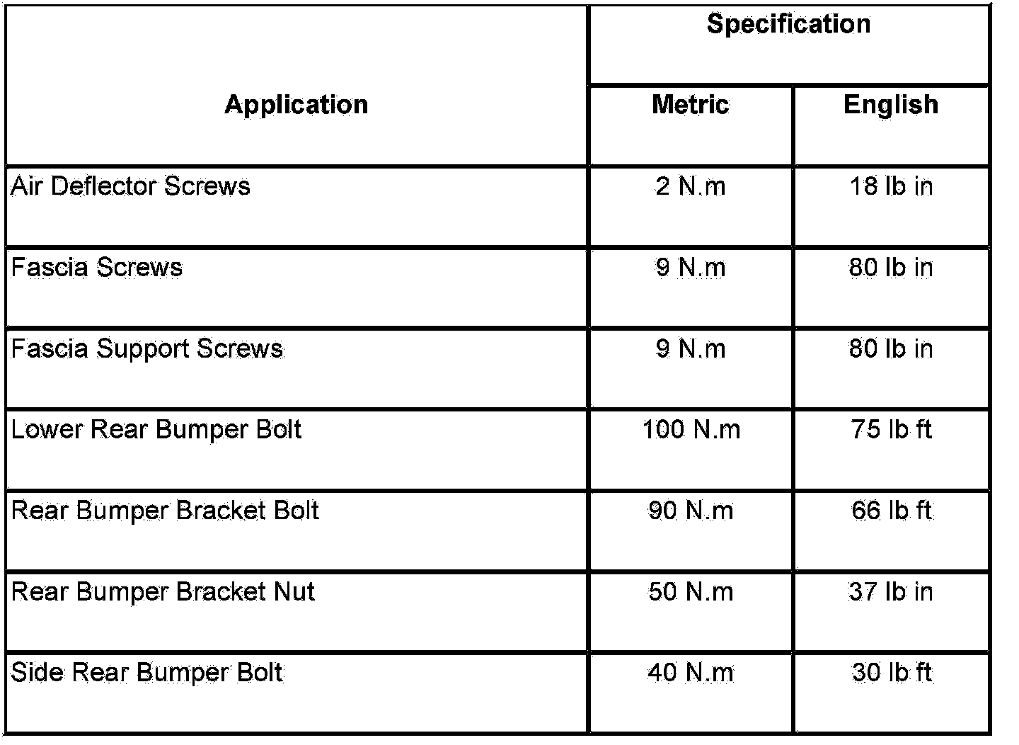 Fastener Tightening Specifications