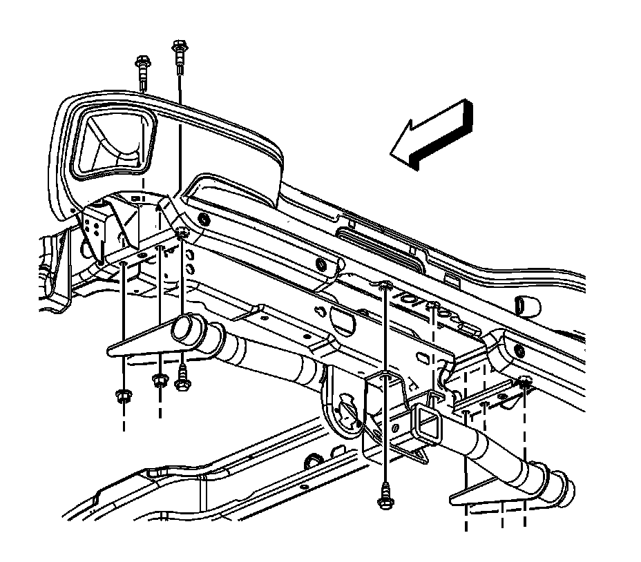 1.Remove the hitch platform bolts from the frame rails and the rear bumper.