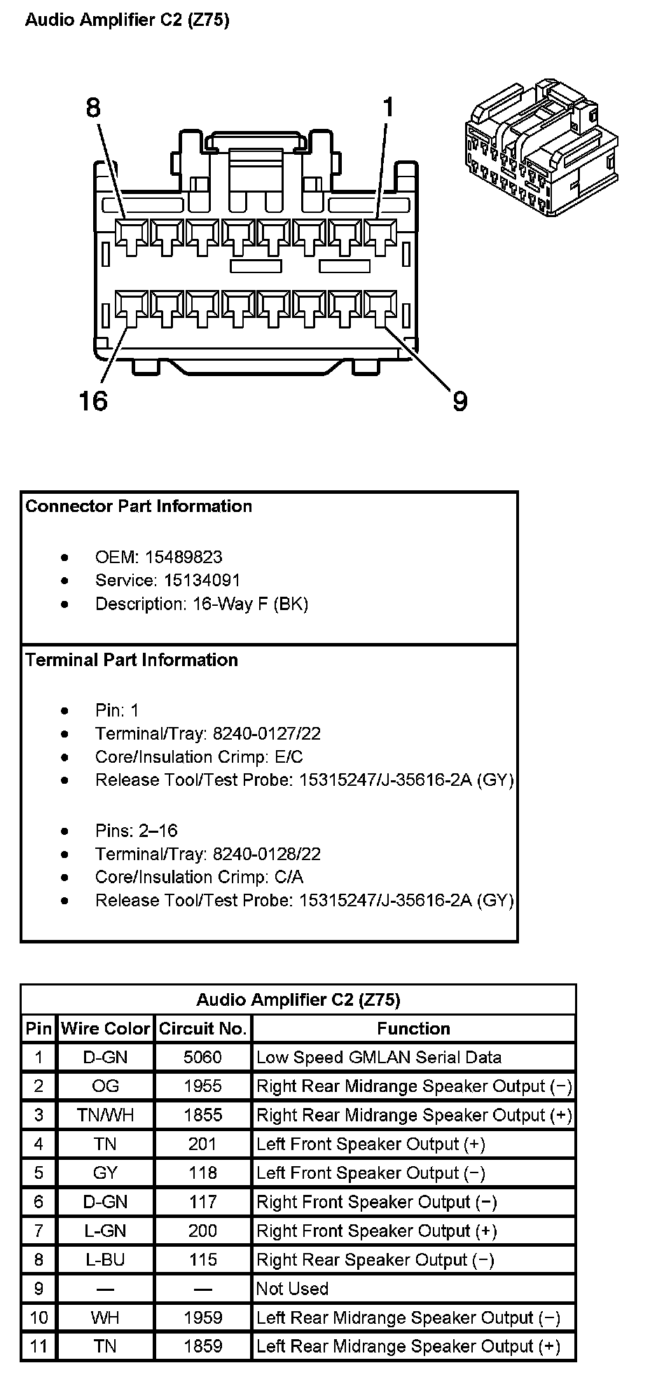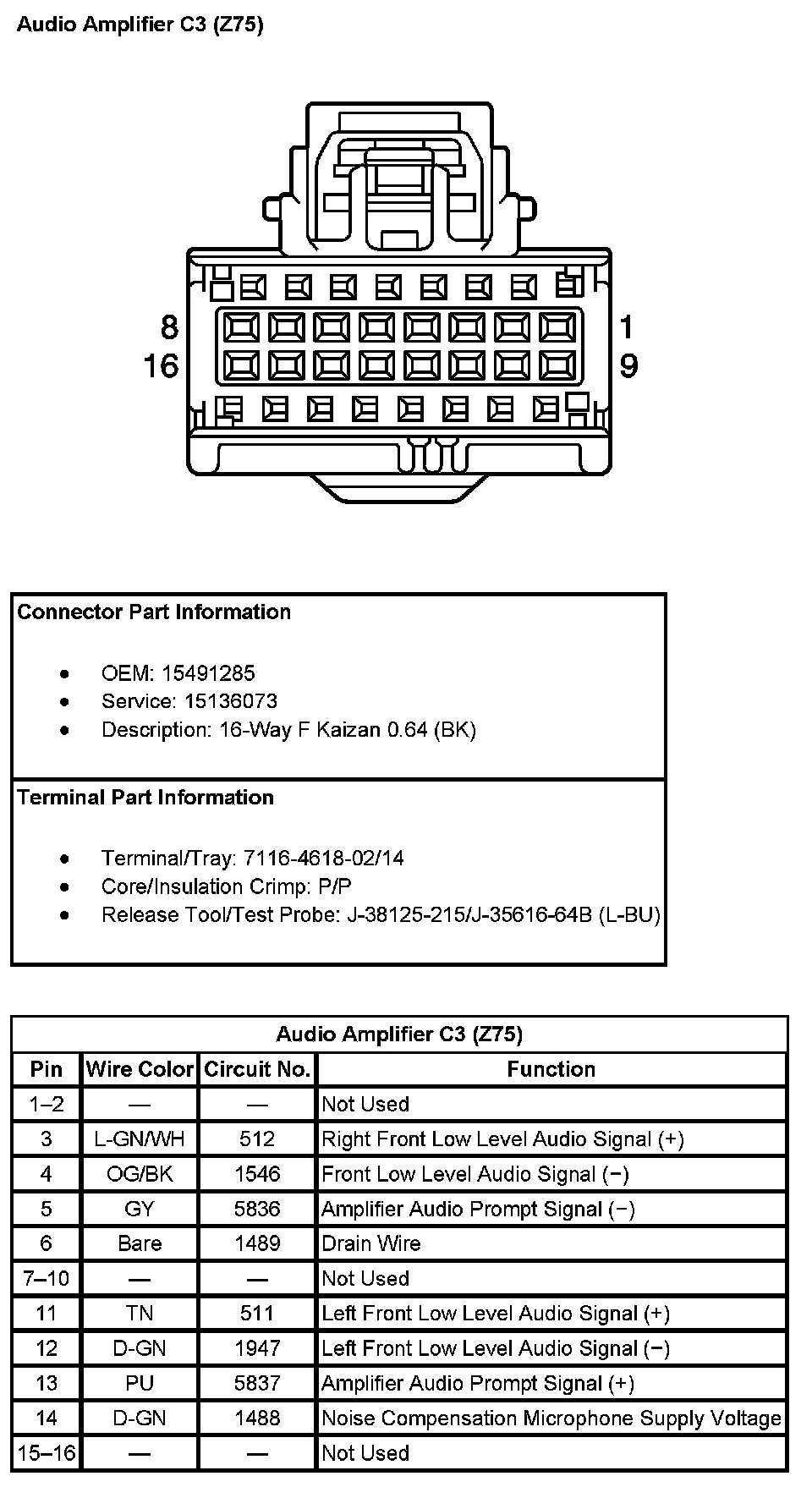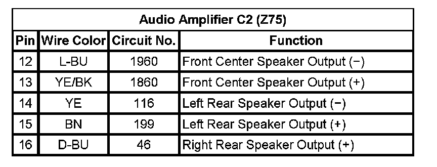 Audio Amplifier C2 (With RPO Code Z75) (Pin 12 To 16):