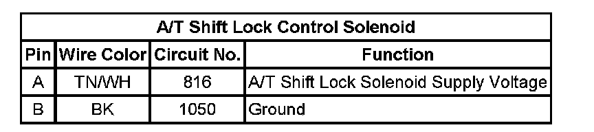 A/T Shift Lock Control Solenoid: