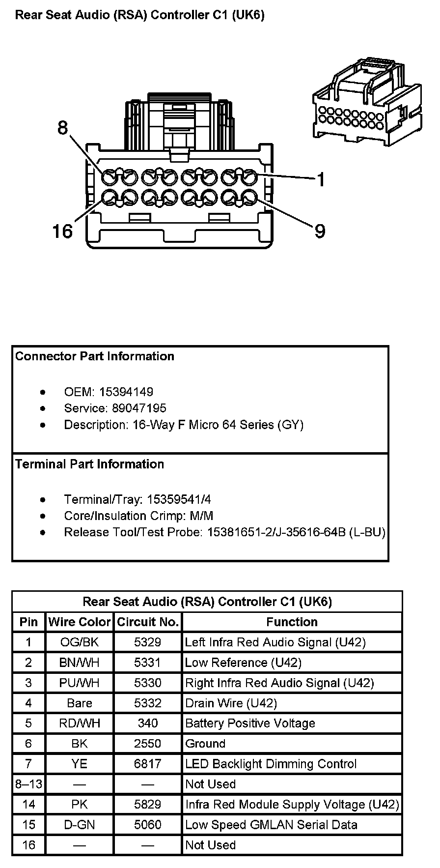 Rear Seat Audio (RSA) Controller C1 (With RPO Code UK6):