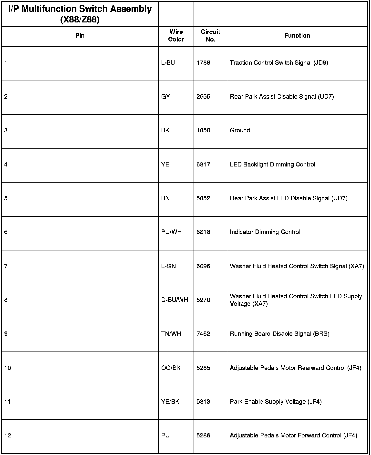 I/P Multifunction Switch Assembly (X88/Z88)