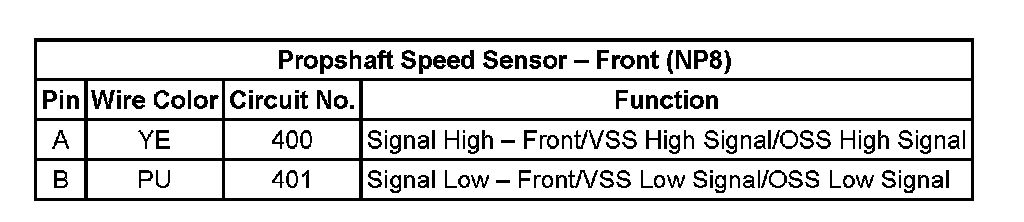Propshaft Speed Sensor - Front (NP8):