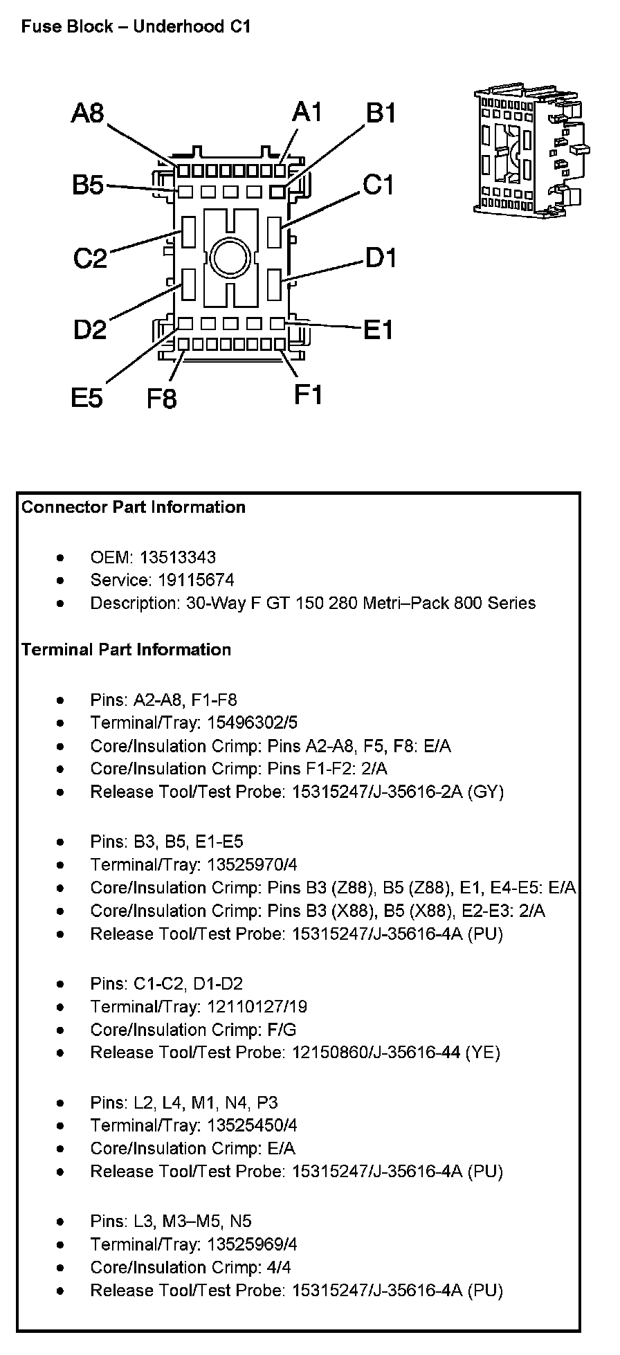 Fuse Block - Underhood C3 (Pin A1 To F8):