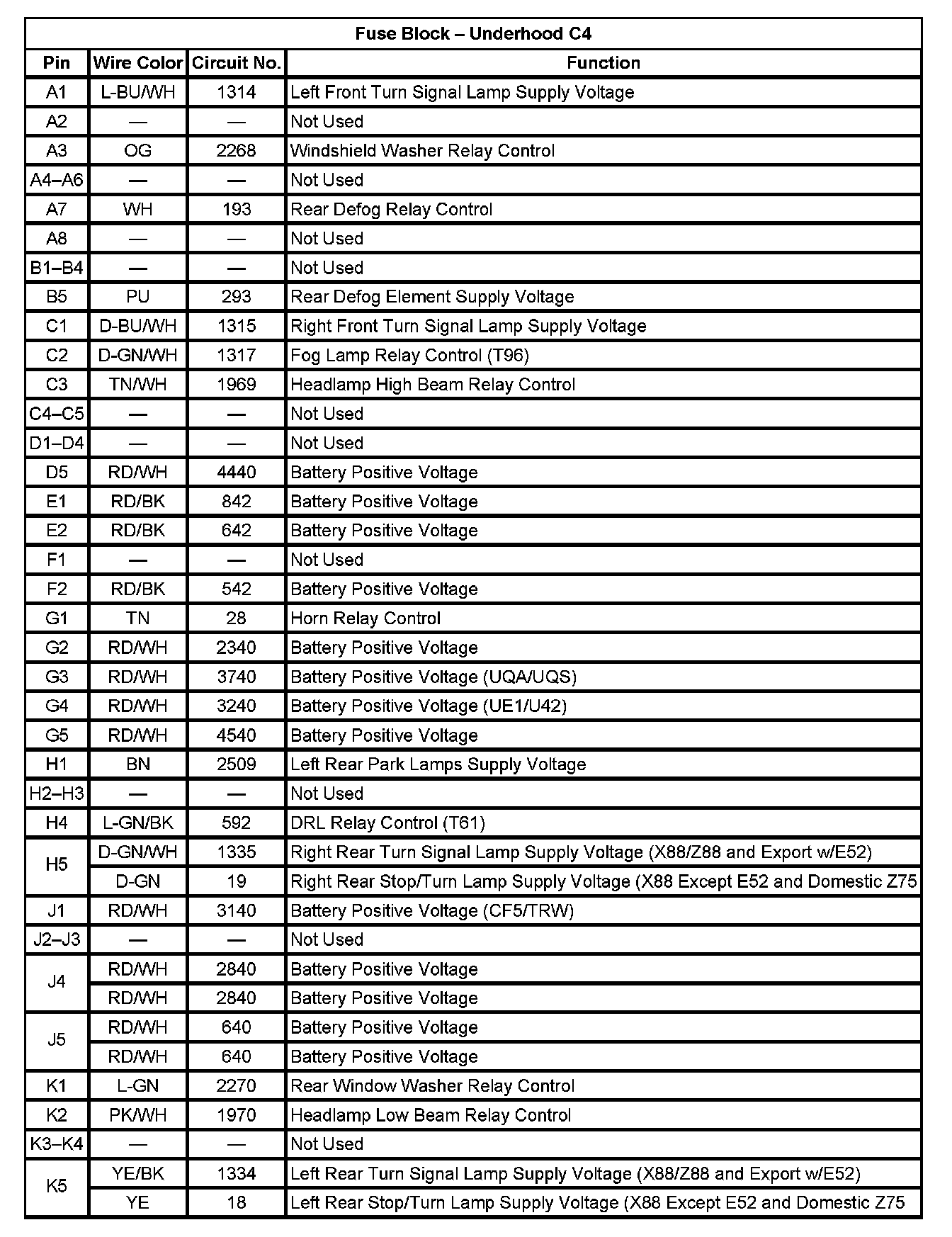 Fuse Block - Underhood C2 (Pin C4 To P5):