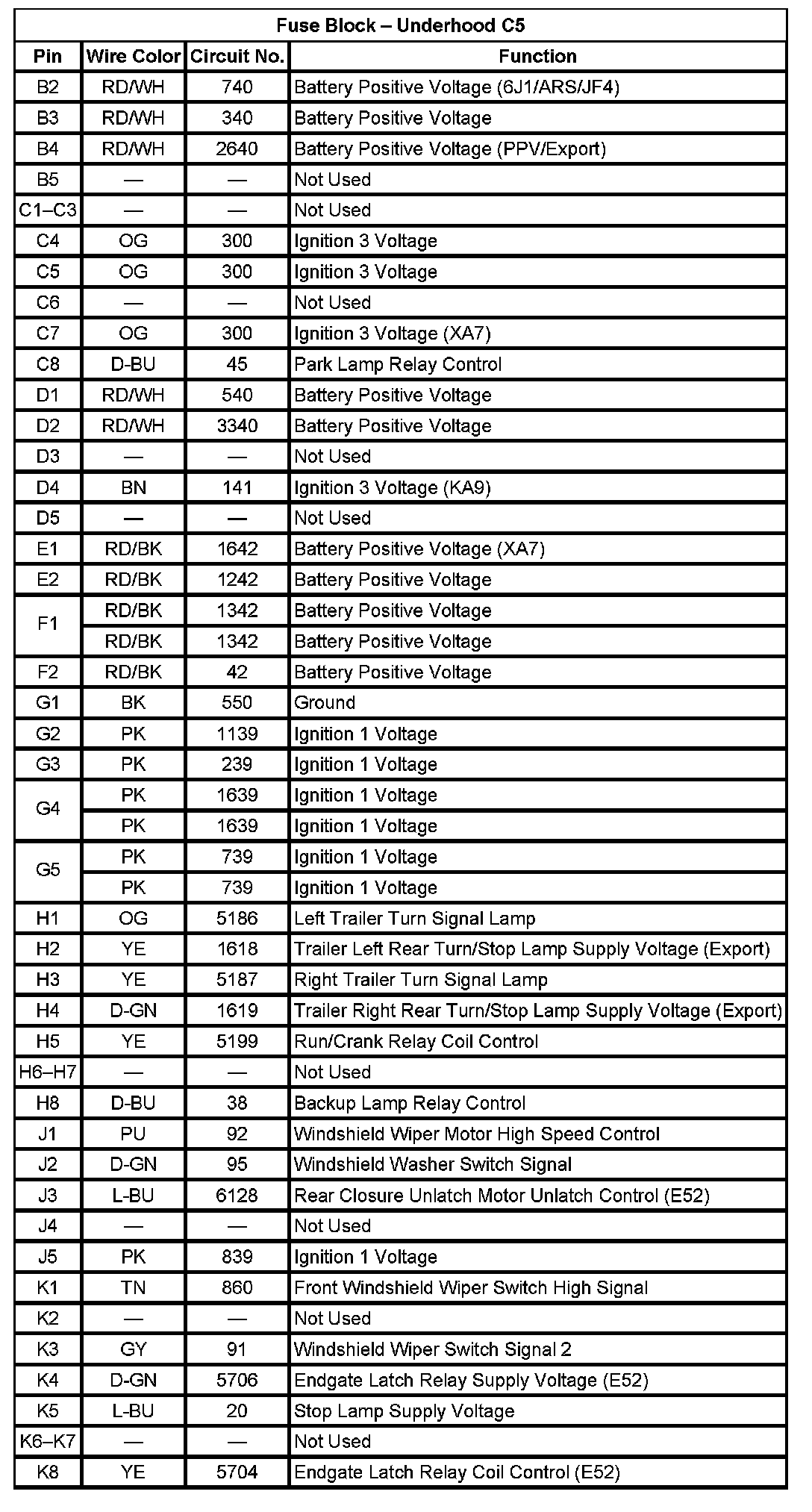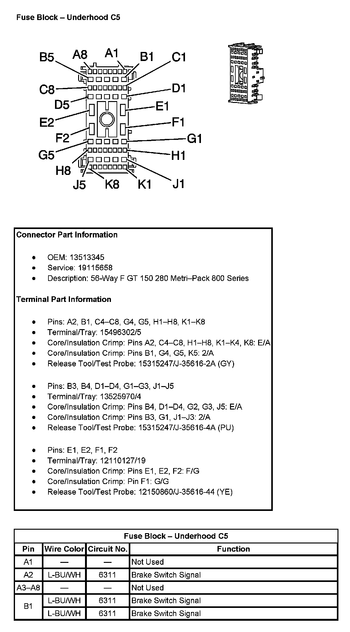 Fuse Block - Underhood C5 (Pin B2 To K8):