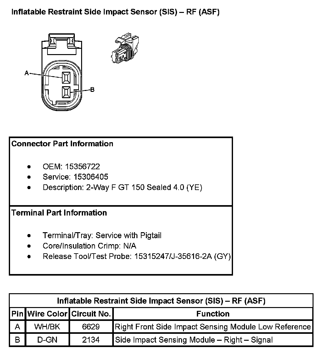 Inflatable Restraint Side Impact Sensor (SIS) - RF (With RPO Code ASF):