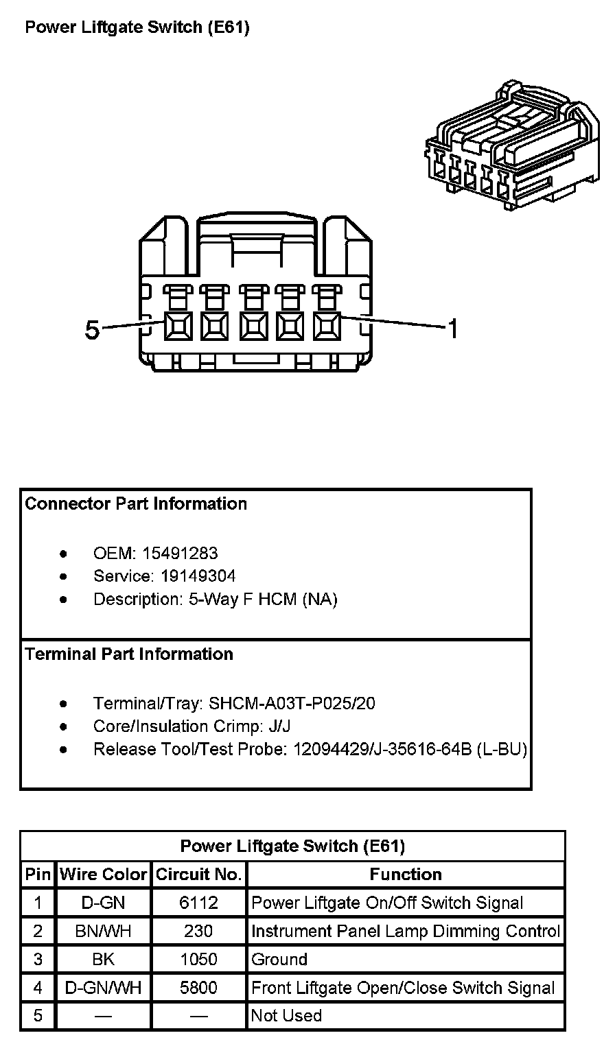 Power Liftgate Switch (With RPO Code E61):