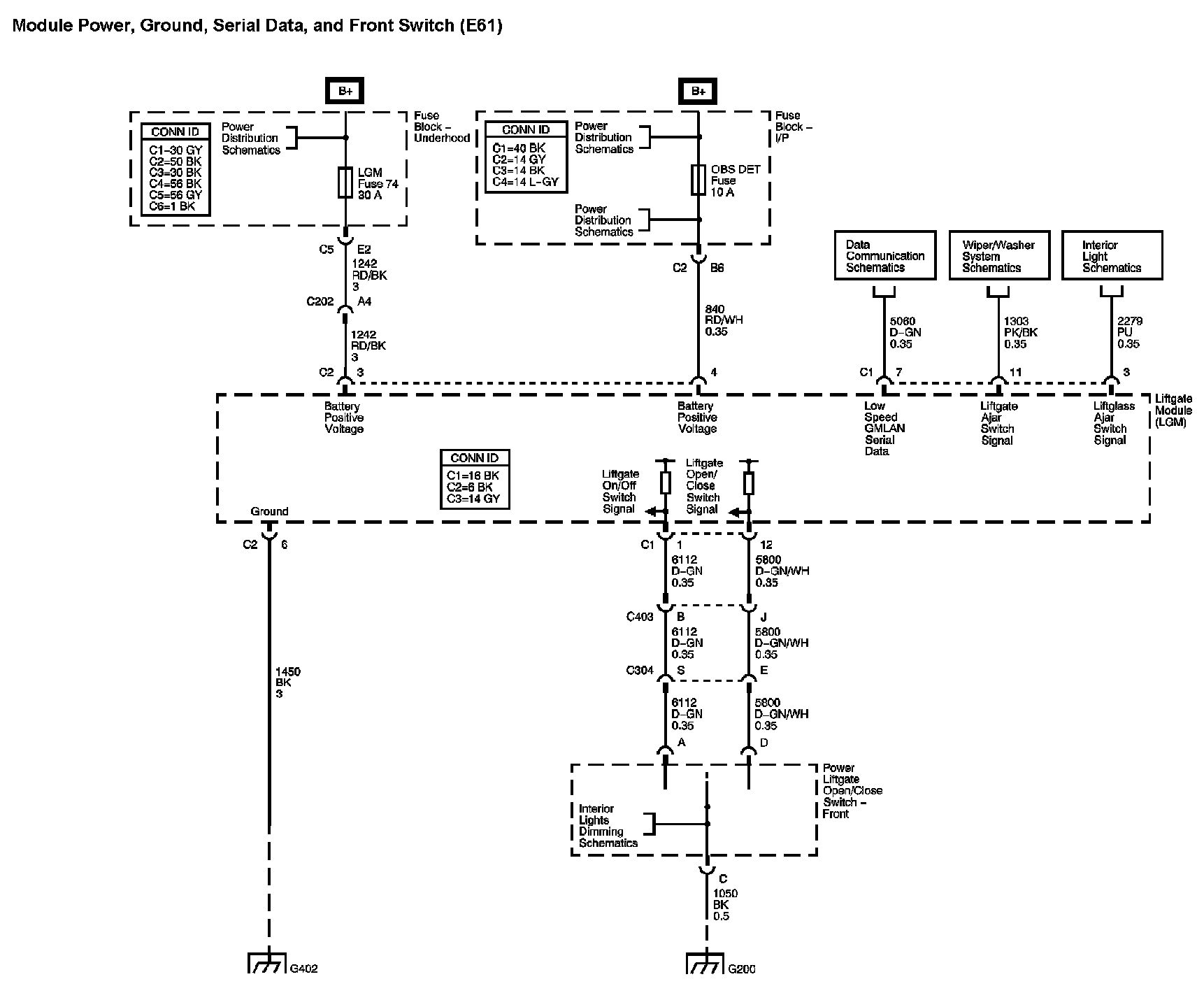The locations for the Connectors, Grounds, Splices, and Grommets shown within these diagrams can be found via their numbers at Vehicle Locations.