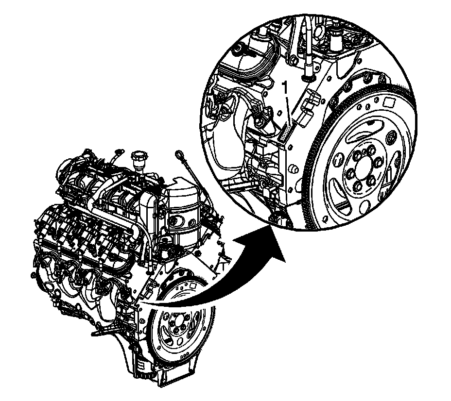 The vehicle identification number (VIN) is located on the left side rear of the engine block (1) and is typically a 9 digit number stamped or laser-etched onto the engine at the vehicle assembly plant.