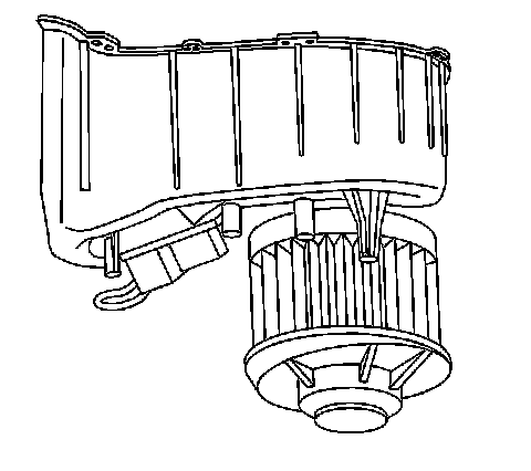 2. Install the blower motor to the heater/ventilation module. Turn the blower assembly clockwise until the retaining tab locks into place.