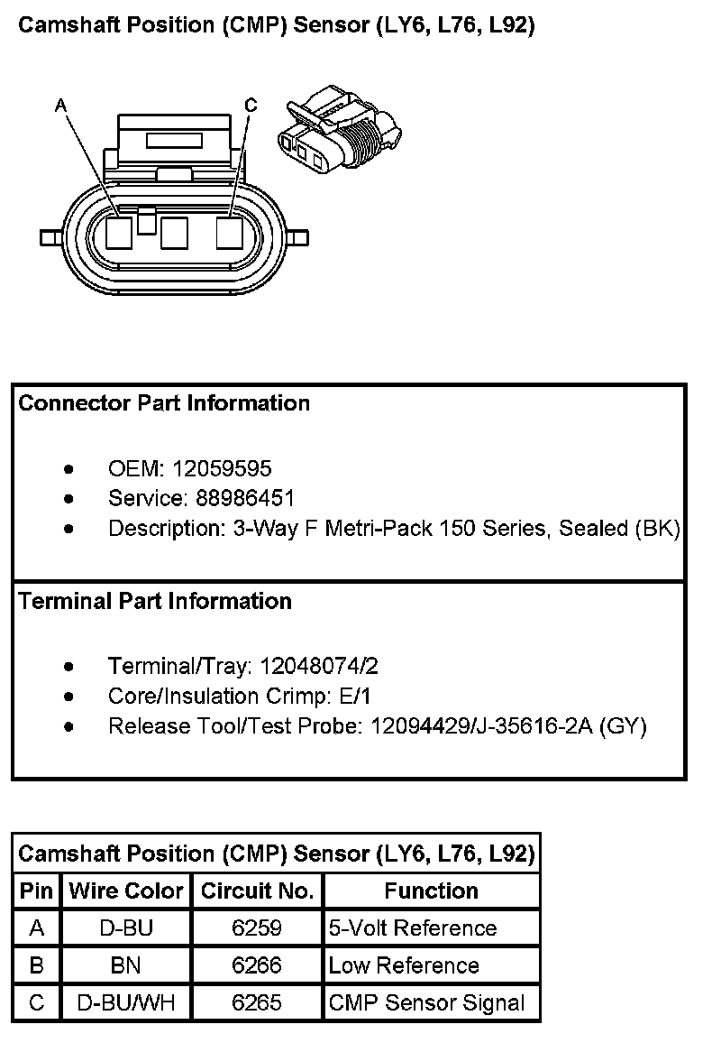 Camshaft Position (CMP) Sensor (LY6, L76, L92):