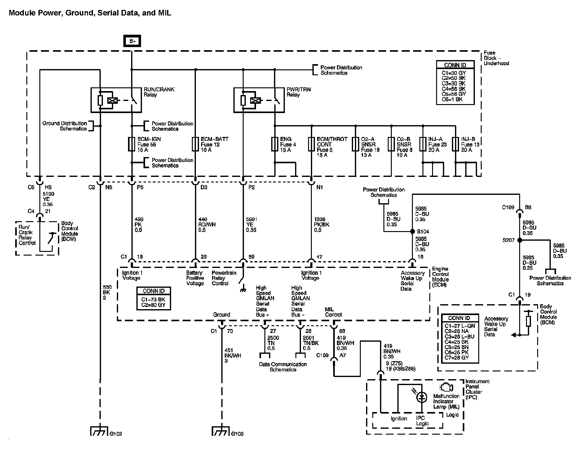 Module Power, Ground, Serial Data, and MIL