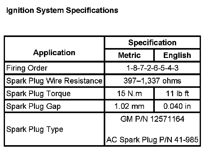 Ignition System Specifications: