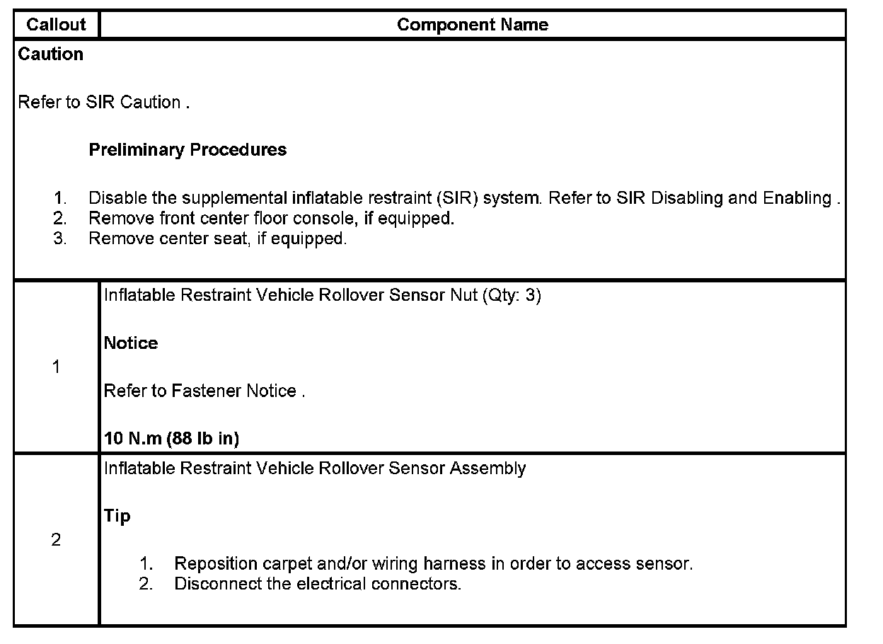 Inflatable Restraint Vehicle Rollover Sensor Replacement
