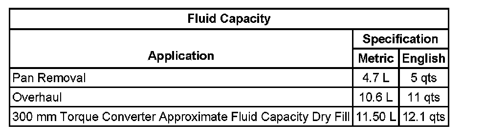 Fluid Capacity Specifications:
