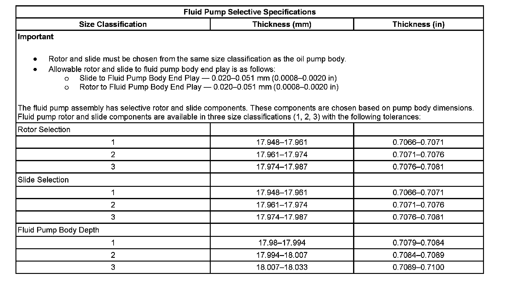 Fluid Pump Selective Specifications
