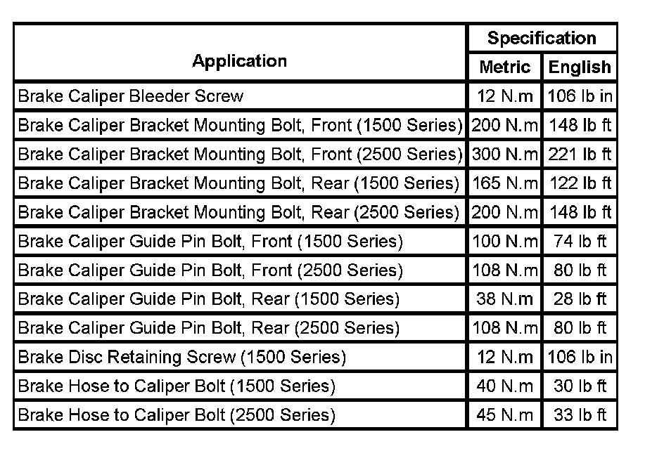 Fastener Tightening Specifications: