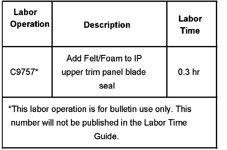 1. Verify the customer concern. If the noise can be stopped by pressing lightly downward on the top of the instrument panel near the windshield, then proceed to the next step.