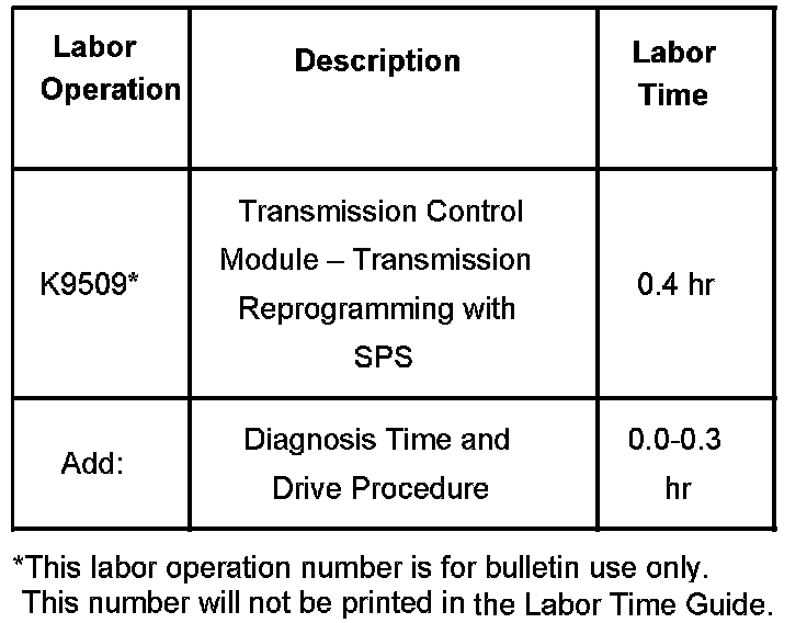 A revised transmission calibration has been developed to address these issues. Reprogram the transmission control module (TCM) with an updated software calibration. This new service calibration will be released with TIS satellite data update version 8.0 or later, available August 14, 2006. As always, make sure your Tech 2(R) is updated with the latest software version.