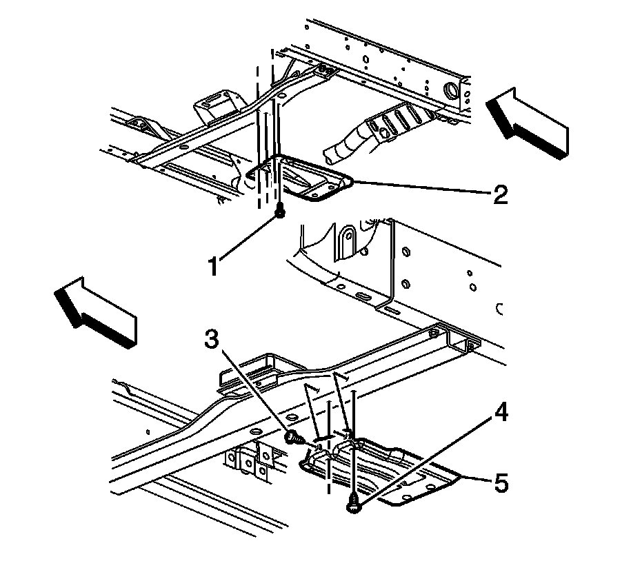 2. Remove the transfer case shield bolts (1, 3, and 4).