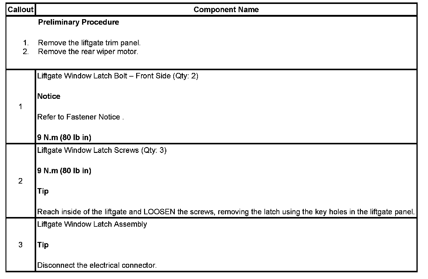 LIFTGATE WINDOW LATCH REPLACEMENT