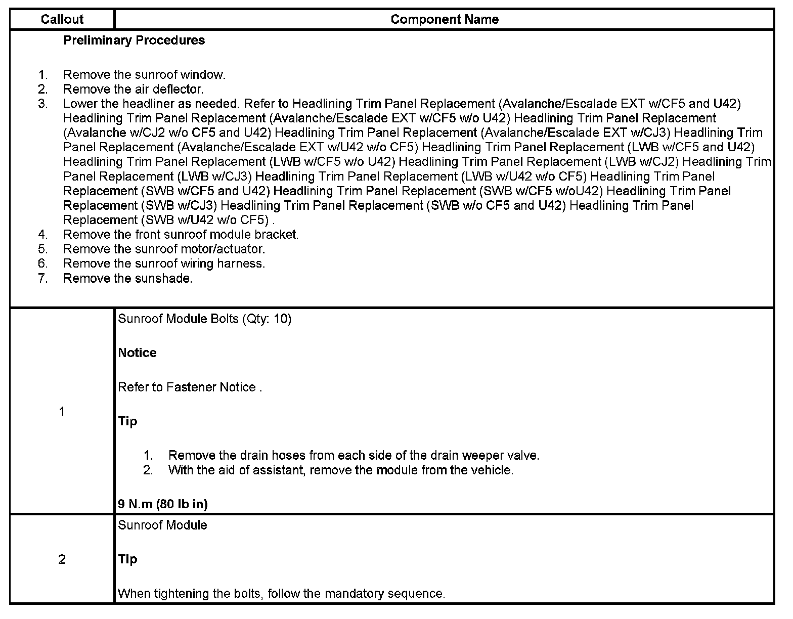 SUNROOF MODULE ASSEMBLY REPLACEMENT