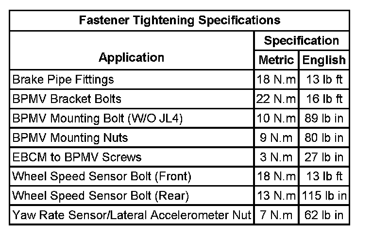Fastener Tightening Specifications: