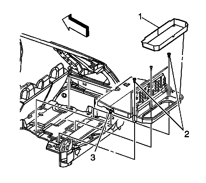 3. Remove the storage compartment bolts (2).