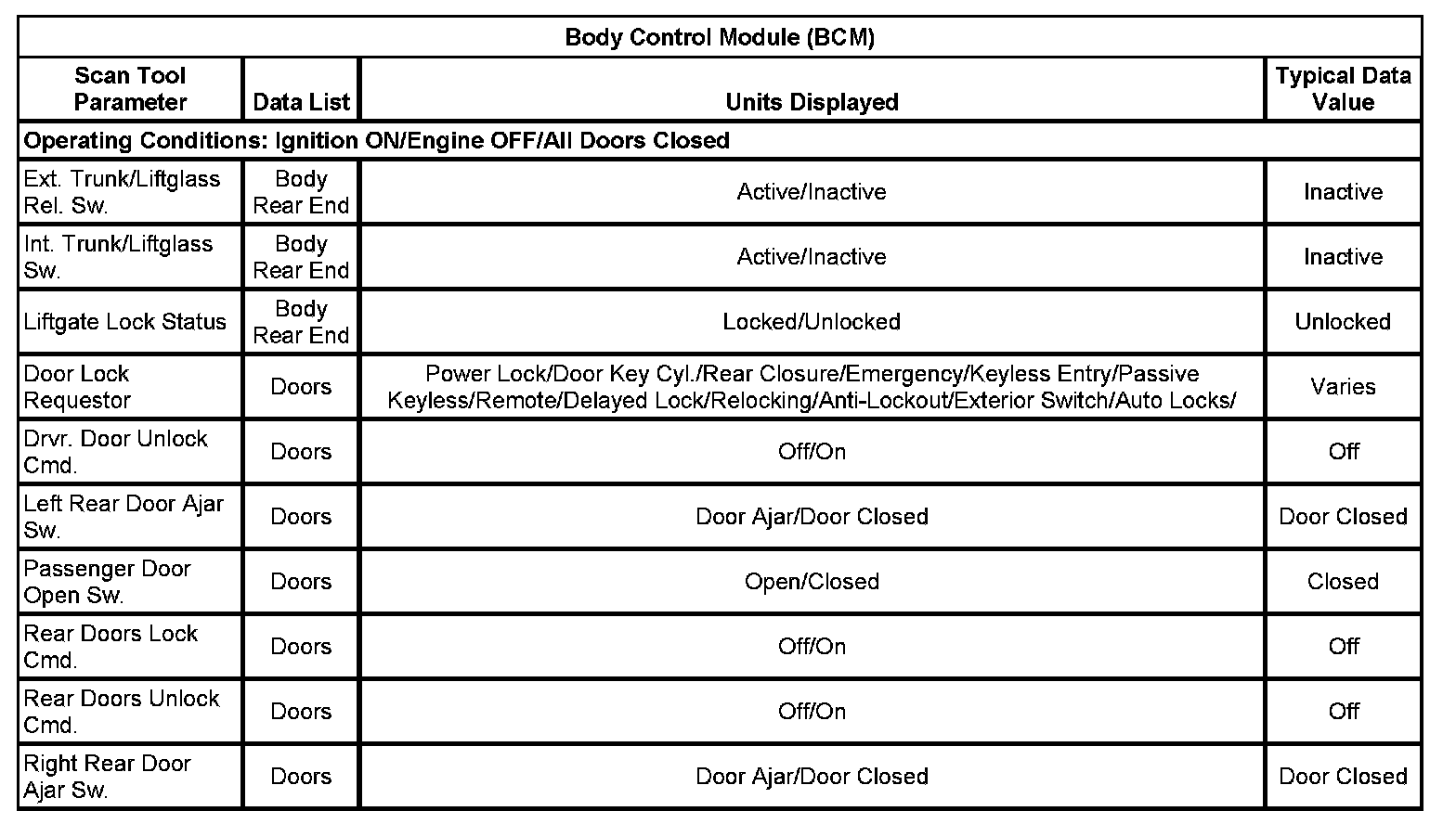 Scan Tool Data List