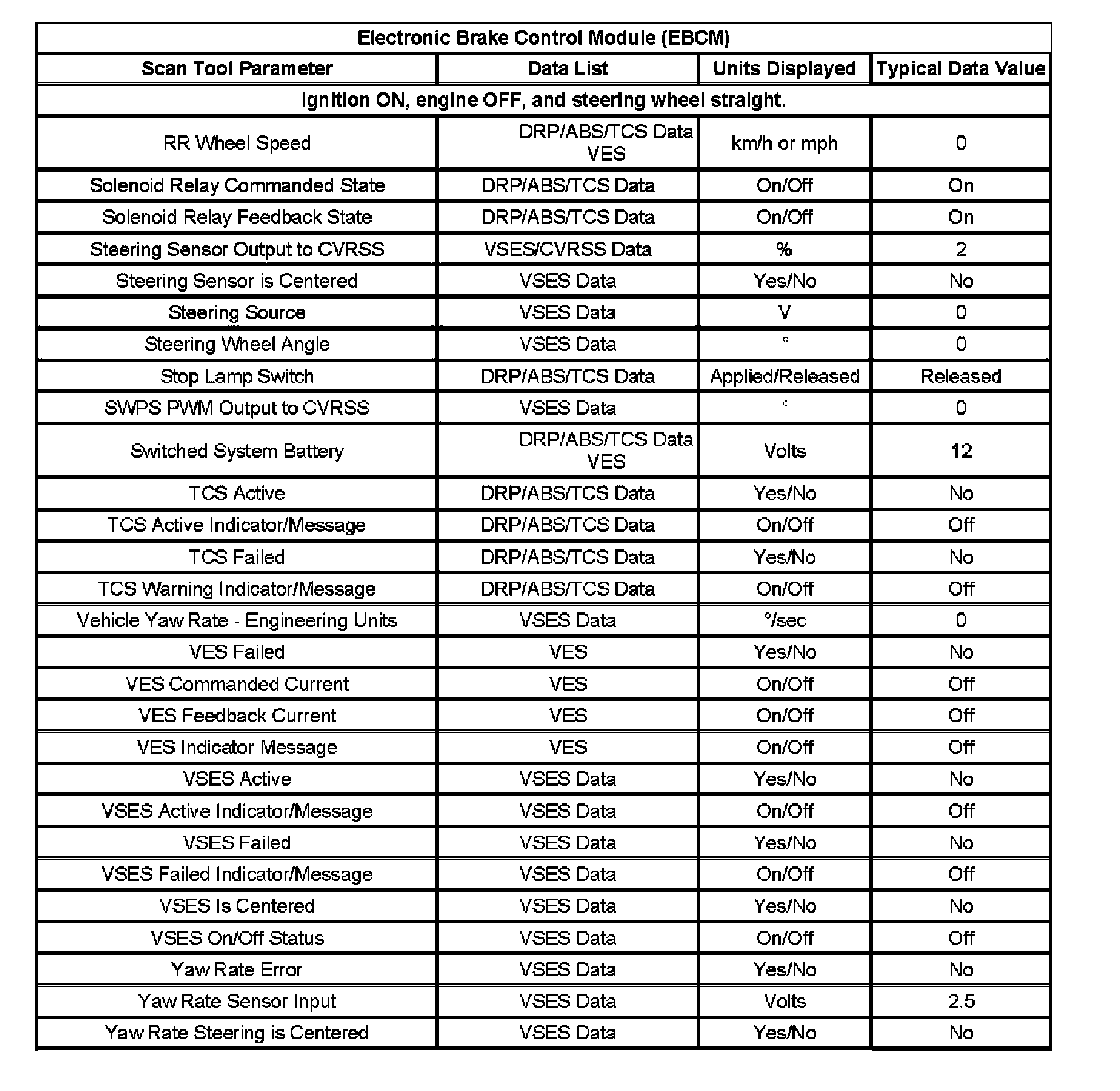Scan Tool Data List