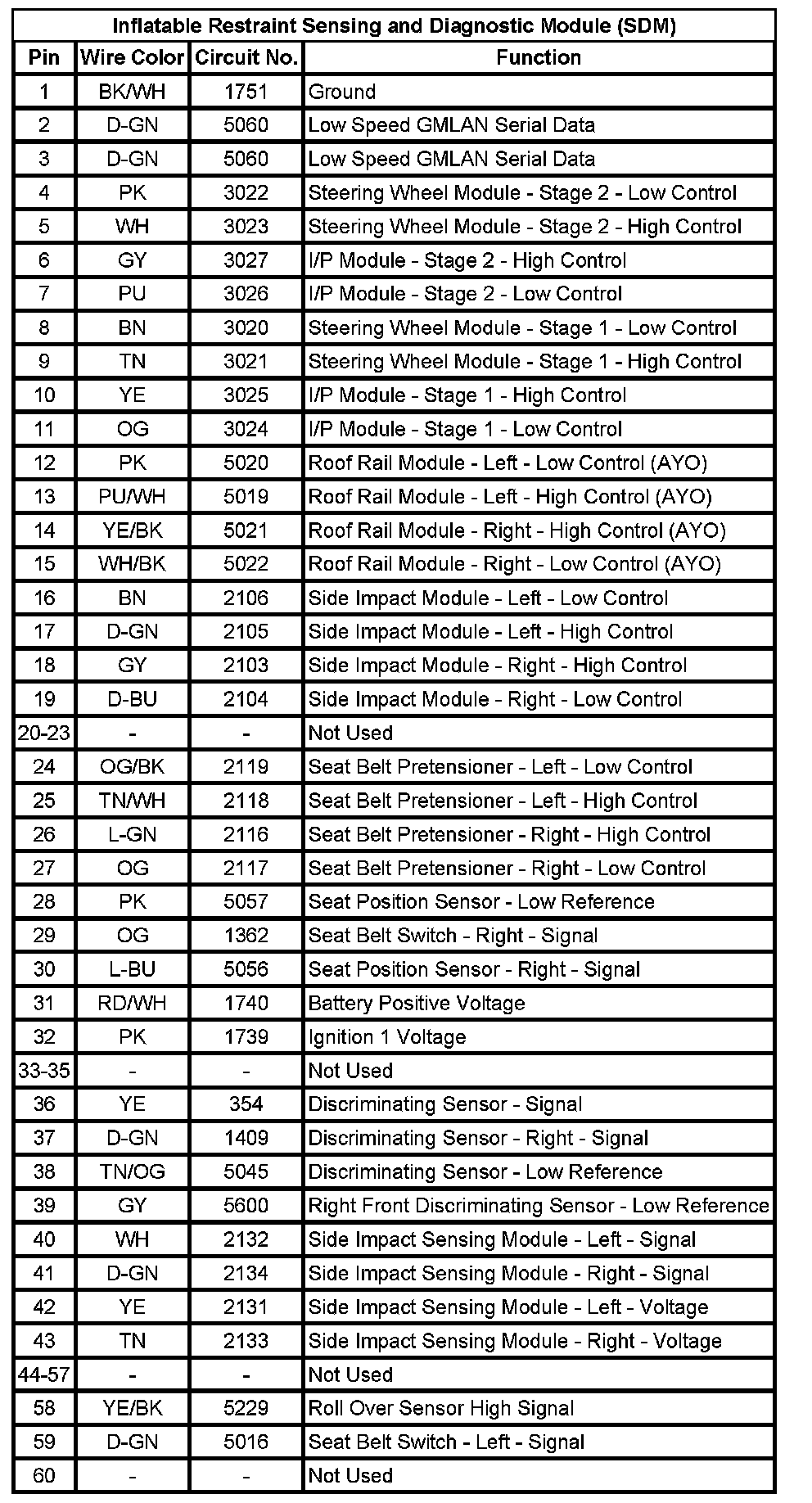 Inflatable Restraint Sensing and Diagnostic Module (SDM)