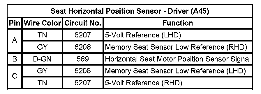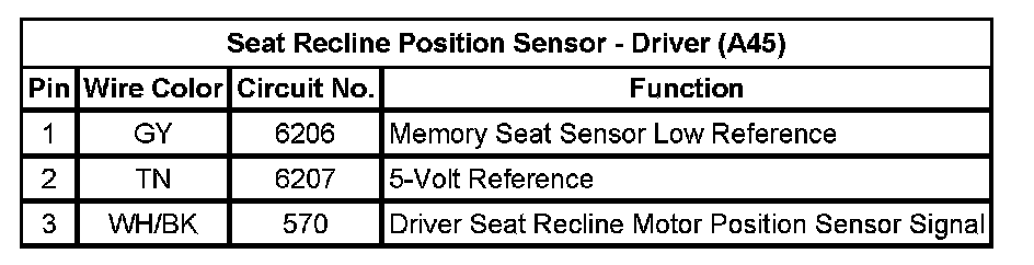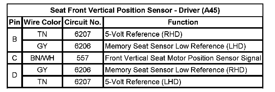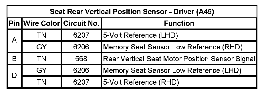 Seat Rear Vertical Position Sensor - Driver (A45)