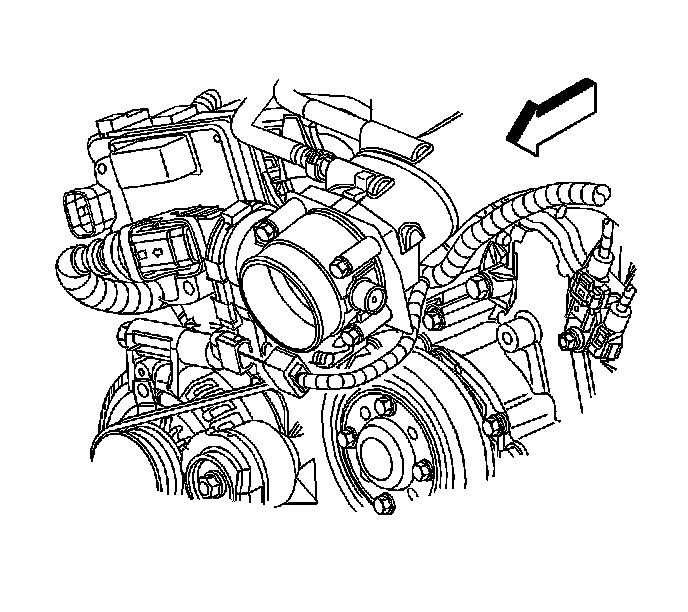 12. Remove the wiring harness retainer from the right side of the throttle body.