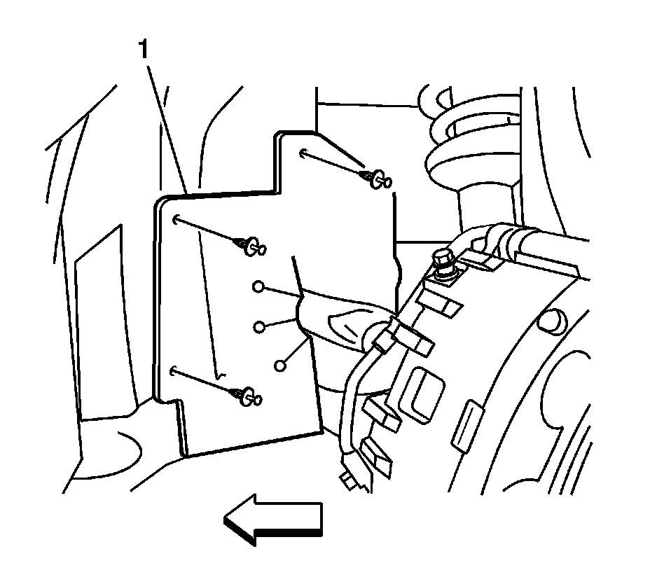 7. Remove the LH front splash shield (1).