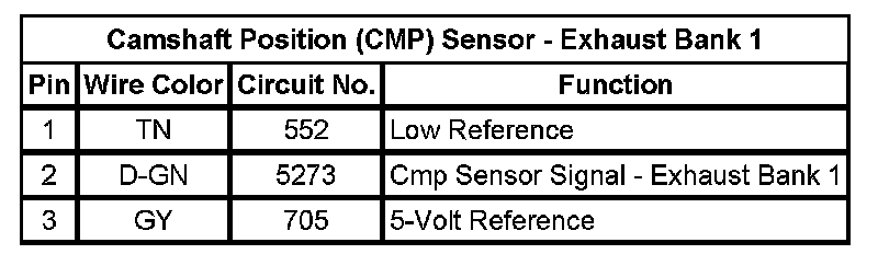 Camshaft Position (CMP) Sensor - Exhaust Bank 1