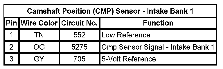 Camshaft Position (CMP) Sensor - Intake Bank 1