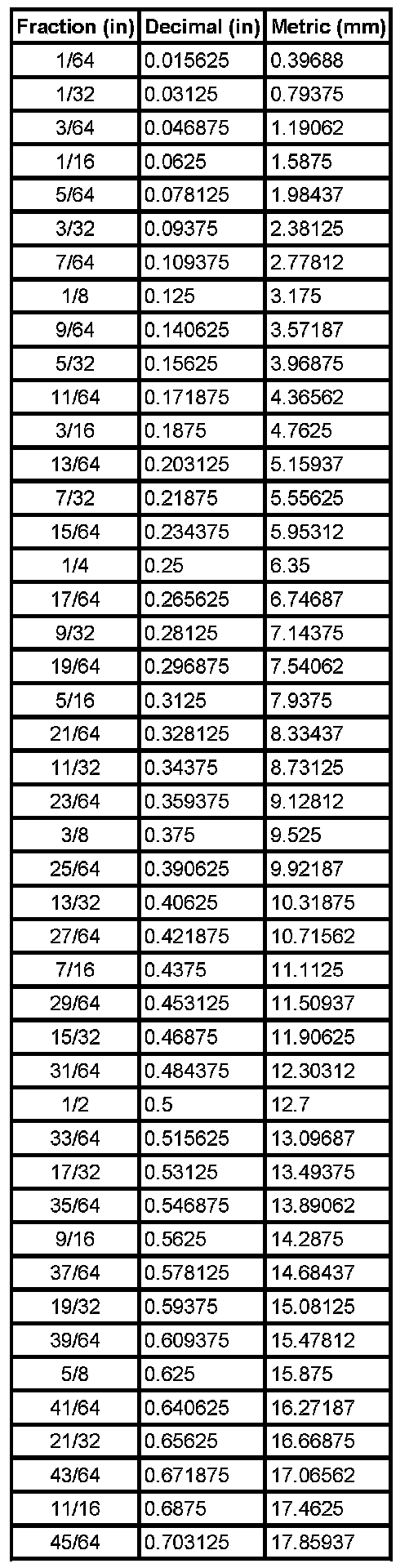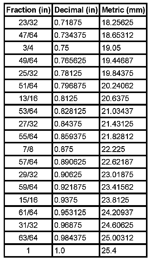 Decimal and Metric Equivalents