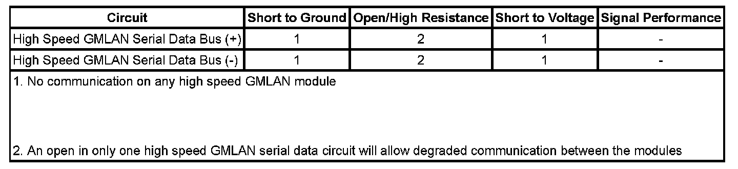 - A module internal malfunction that causes a short to voltage or ground on the high speed GMLAN circuits