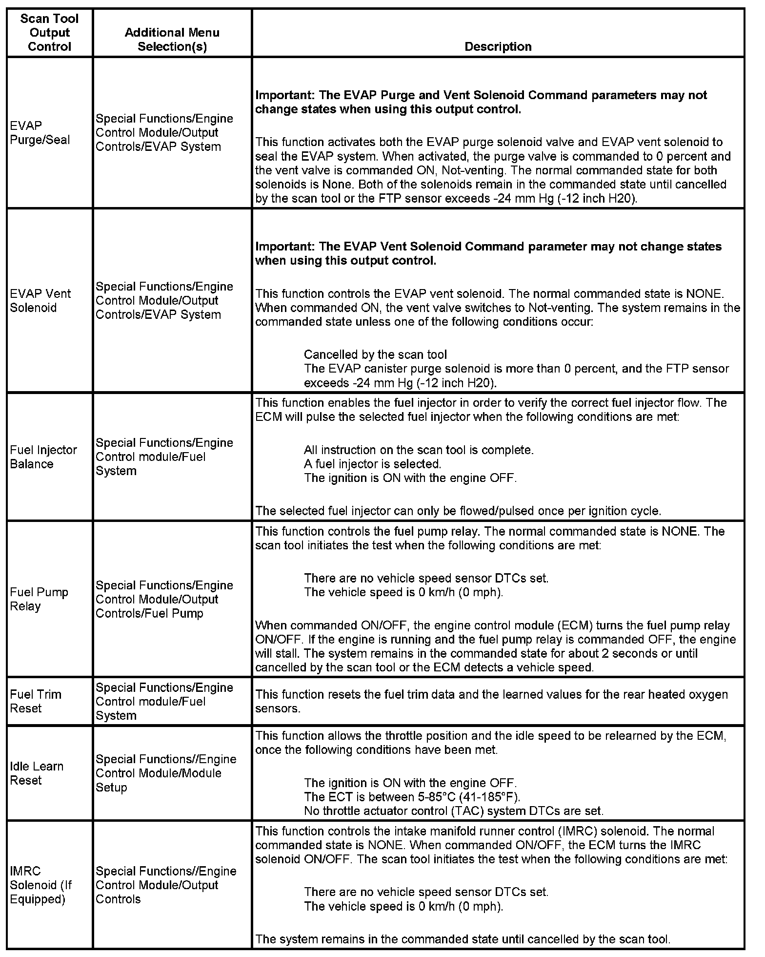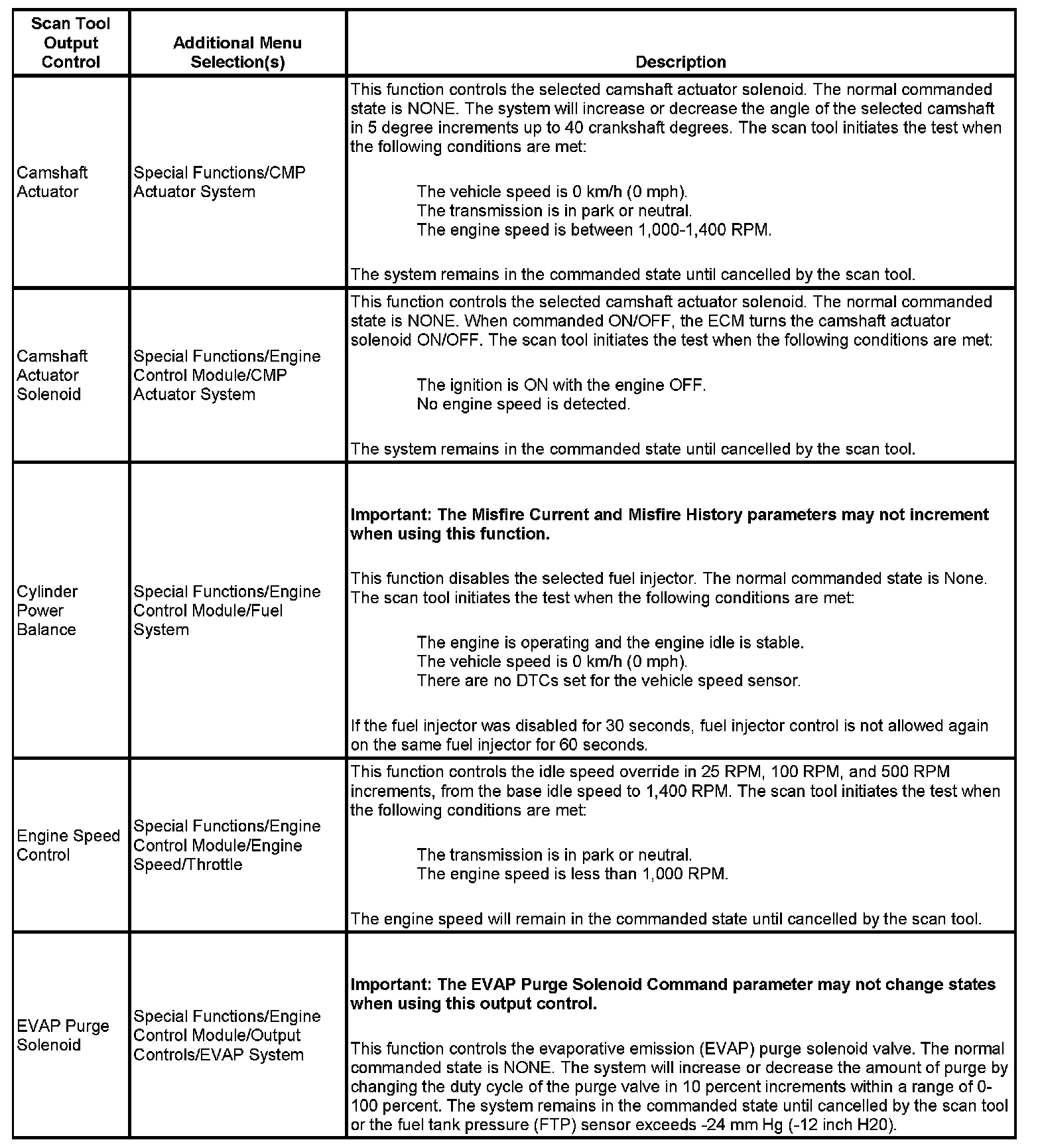 Scan Tool Output Controls