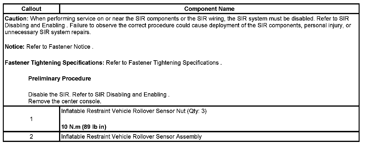 Inflatable Restraint Vehicle Rollover Sensor Replacement