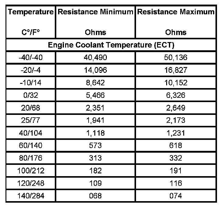 Temperature Versus Resistance - Engine Coolant Temperature Sensor
