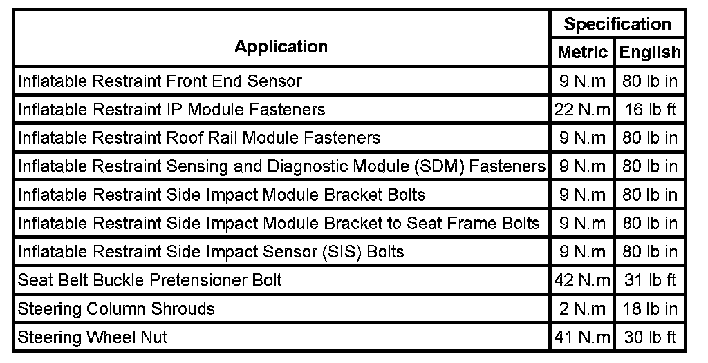 Fastener Tightening Specifications