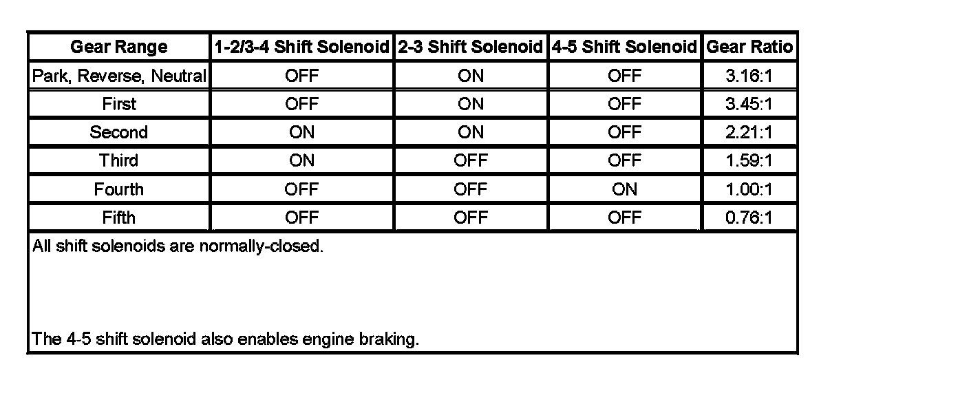Shift Solenoid Valve State and Gear Ratio: