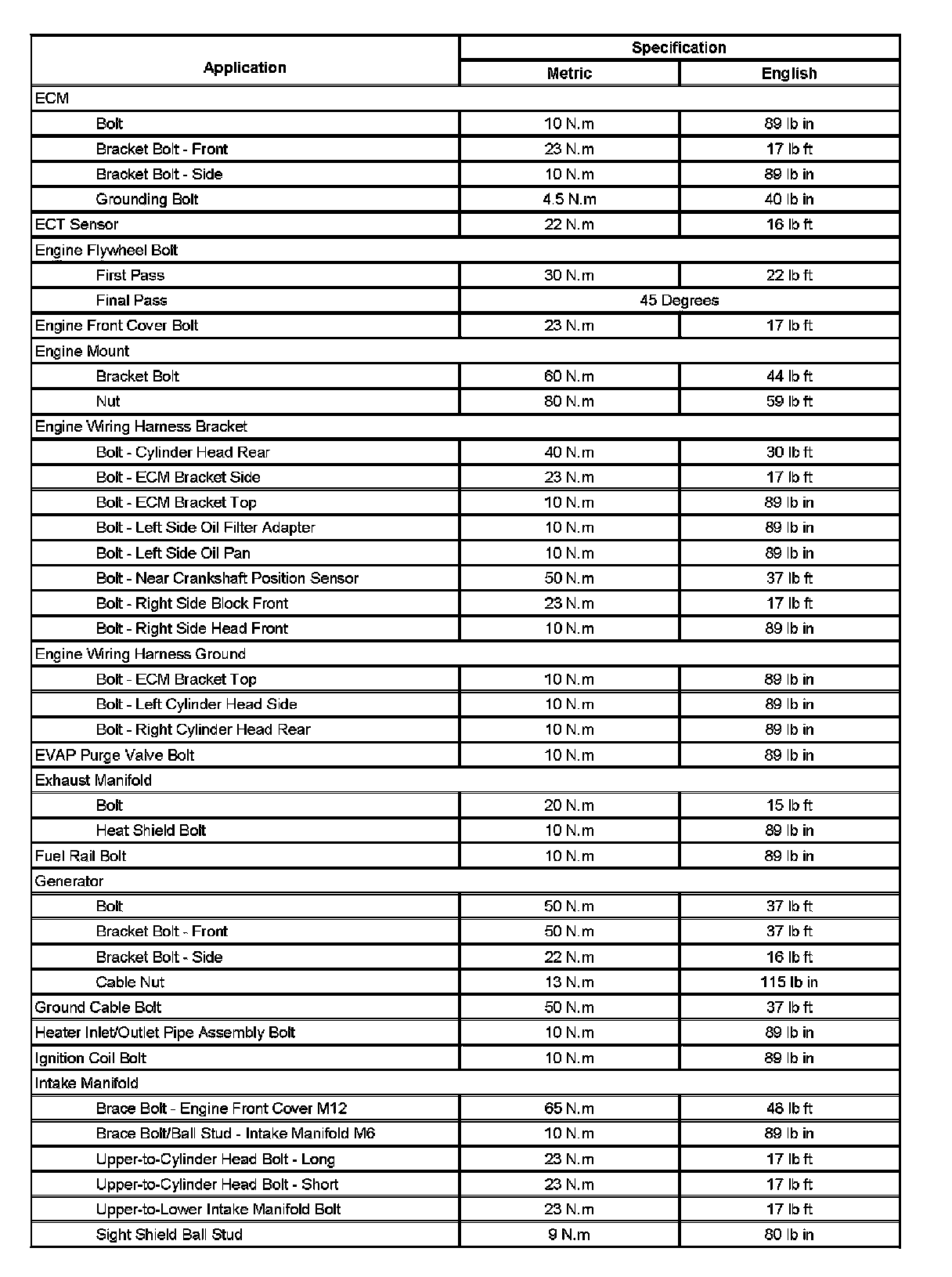 Fastener Tightening Specifications (Part 2):