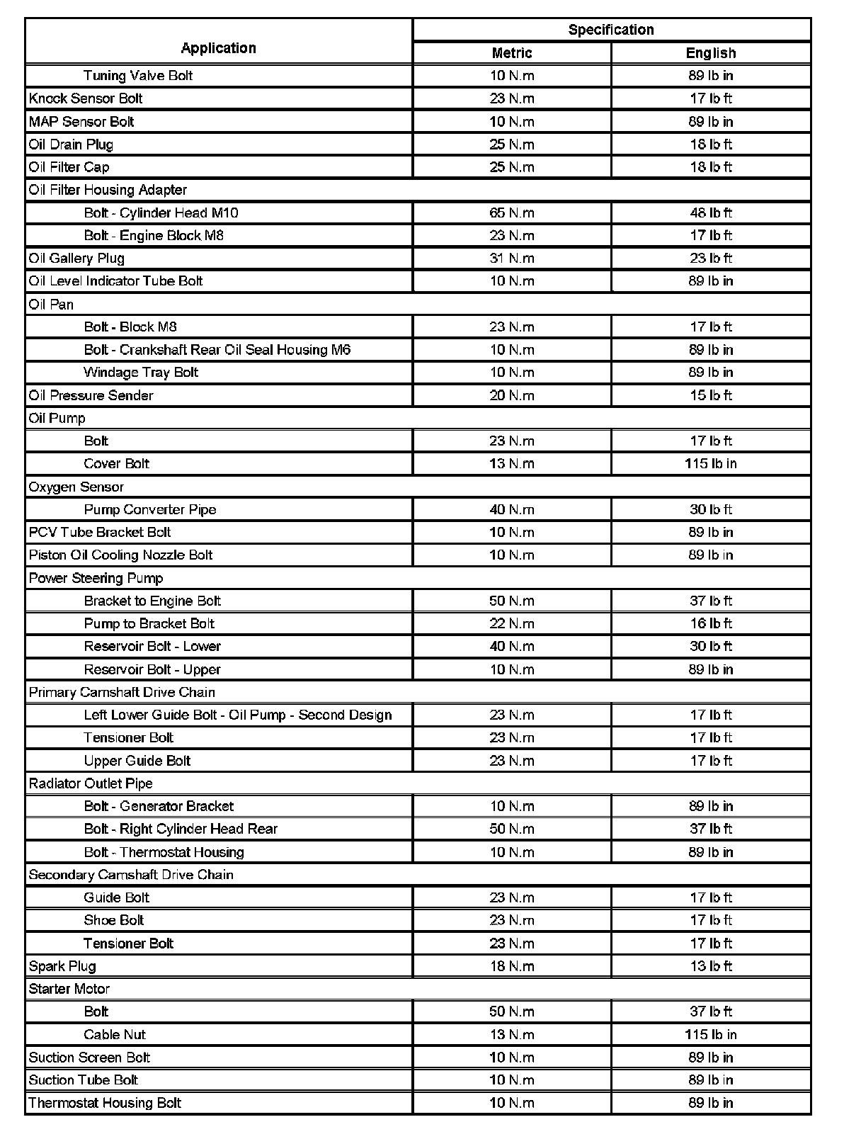 Fastener Tightening Specifications